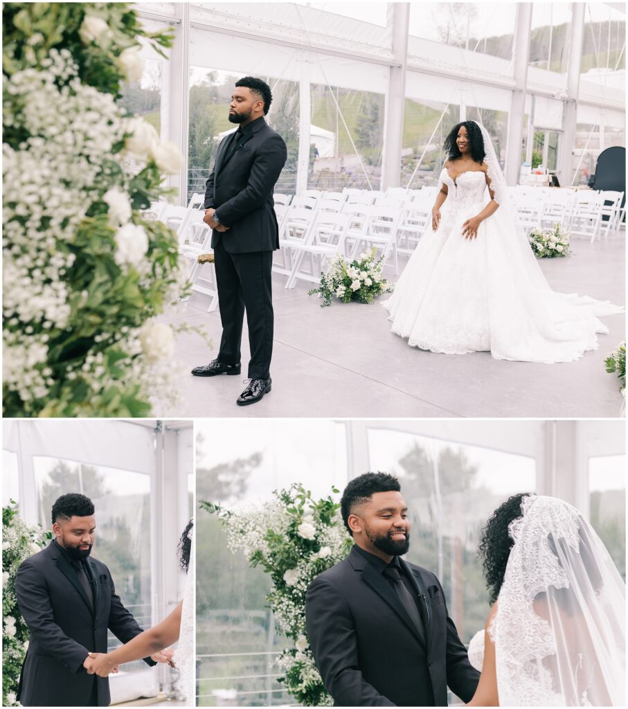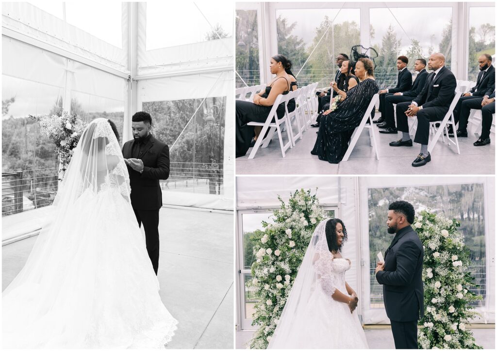 The ceremony took place surrounded by sweeping natural views that made the day feel timeless. Just as K made her way to the altar, the clouds parted and the sunlight streamed through — nature’s perfect blessing.