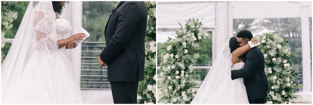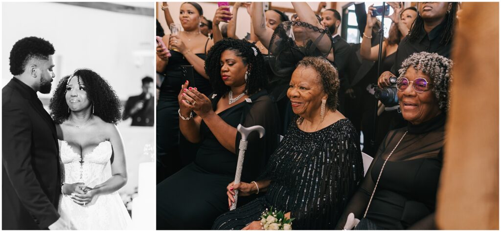 Every detail of K&R’s wedding reflected love, family, and legacy. Before seeing her groom, K shared a “first look” with her grandmother, a moment filled with emotion and gratitude. Then, they had private vows with just immediate family and day one close friends. For the ceremony, the bride’s grandmother walked her down the aisle. It was a powerful nod to the matriarch who helped shape her life.