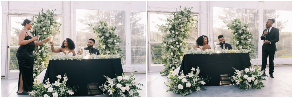 The dress code was all-black black tie, and it could not have been more striking. Guests arrived looking like they’d stepped straight out of a Vogue spread — sleek, timeless, and effortlessly chic. Against the natural greens and soft light of The Venue at Carley Brook, the contrast made every image pop. It was modern sophistication at its finest.